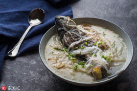 Sopa de pescado desmenuzado y tofu (requesón de soja)